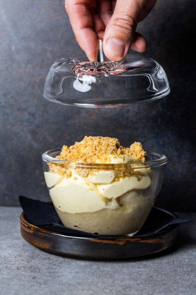 - Deser lodowy "Szarlotka": lody śmietankowe, prażone jabłka, kruszonka marcepanowa