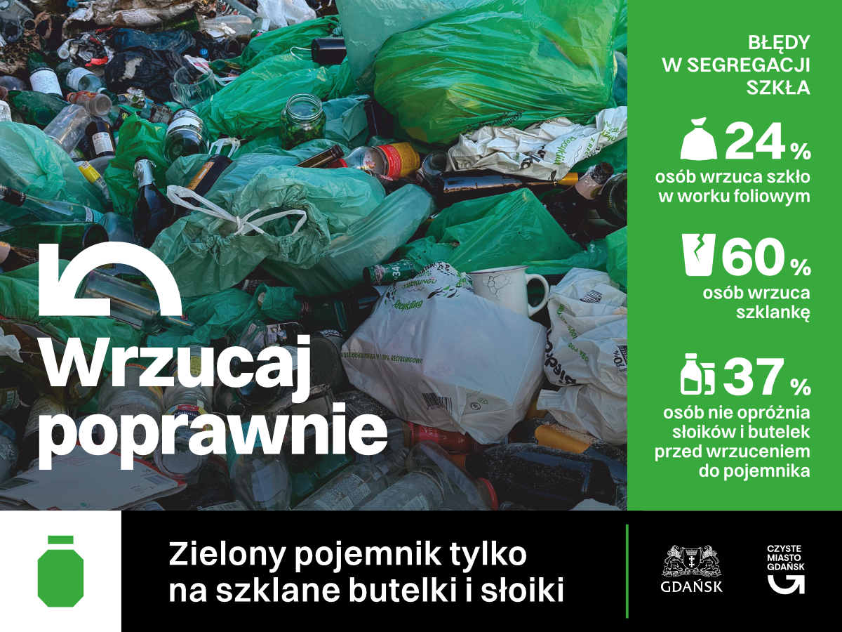 Czy wiesz, że aż 24% z nas wciąż wrzuca szkło w plastikowych workach, a co trzecia osoba zapomina opróżnić słoik z zawartości przed jego wyrzuceniem? Kolejna odsłona kampanii edukacyjnej Wrzucaj poprawnie, przygotowanej przez Czyste Miasto Gdańsk, zwraca uwagę na to, jak prawidłowo segregować szkło oraz jakie błędy popełniamy najczęściej, przez co ten wartościowy surowiec traci możliwość recyklingu. Kampania podkreśla również, że właściwe postępowanie z odpadami ma kluczowe znaczenie dla jakości odzyskiwanego materiału, ochrony środowiska oraz kosztów ponoszonych przez społeczeństwo.