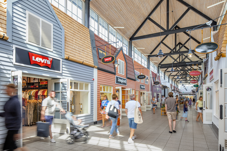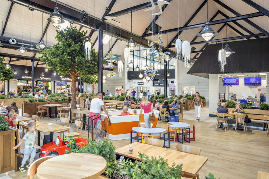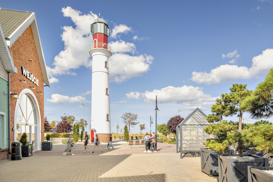 Wyjątkowy charakter obiektu podkreśla niebanalna architektura inspirowana skandynawską wioską rybacką, z charakterystyczną 24-metrową latarnią morską, która tworzy przyjemną atmosferę zakupów.