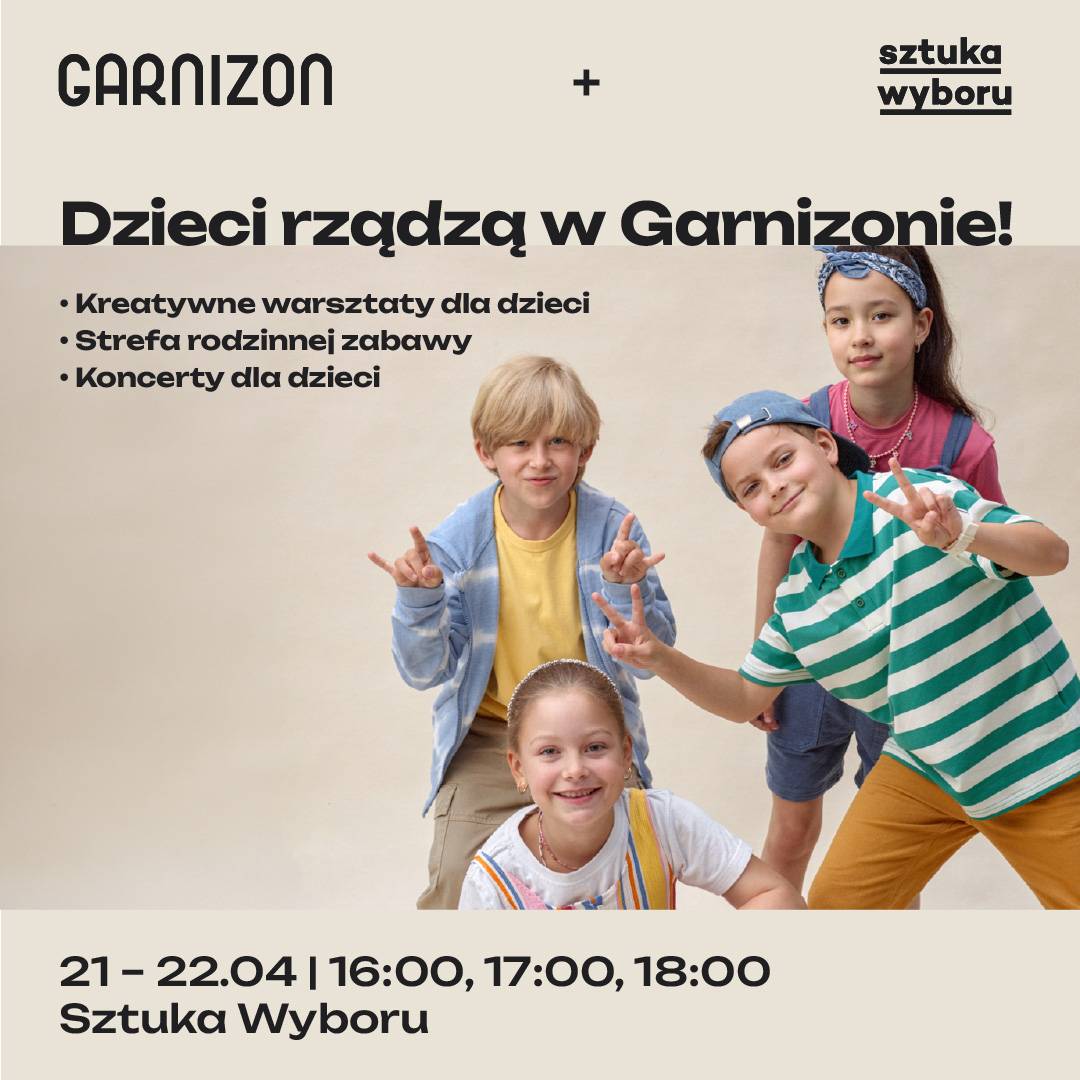 21 i 22 kwietnia to dwa dni, w których gdański Garnizon przejmą we władanie dzieci! Właśnie wtedy w Sztuce Wyboru, Starym Maneżu i zielonej przestrzeni pomiędzy nimi odbędą się liczne zajęcia kreatywne, warsztaty i plenerowe zabawy, a koncerty zagra artysta wprost uwielbiany przez młodą widownię – CeZik!
