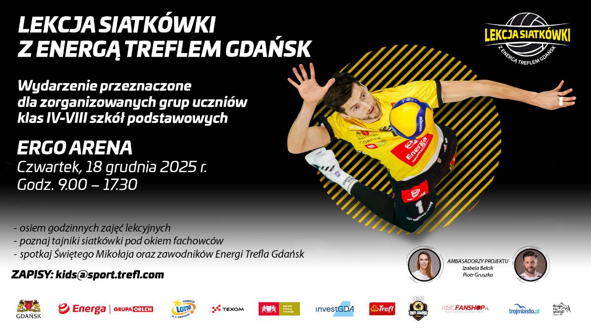 - Jeśli lubicie siatkówkę albo po prostu sportową zabawę, to właśnie dla Was odbędzie się ta wyjątkowa lekcję, podczas której będziecie mogli spróbować swoich sił na prawdziwym siatkarskim boisku i poczuć się jak prawdziwi zawodnicy! Nie przegapcie tej szansy, by dobrze się bawić i nauczyć czegoś nowego. Zapraszamy Was 3 grudnia do Ergo Areny – czekamy z super energią i świetnym nastawieniem do wspólnej siatkarskiej zabawy – dodał Piotr Gruszka.