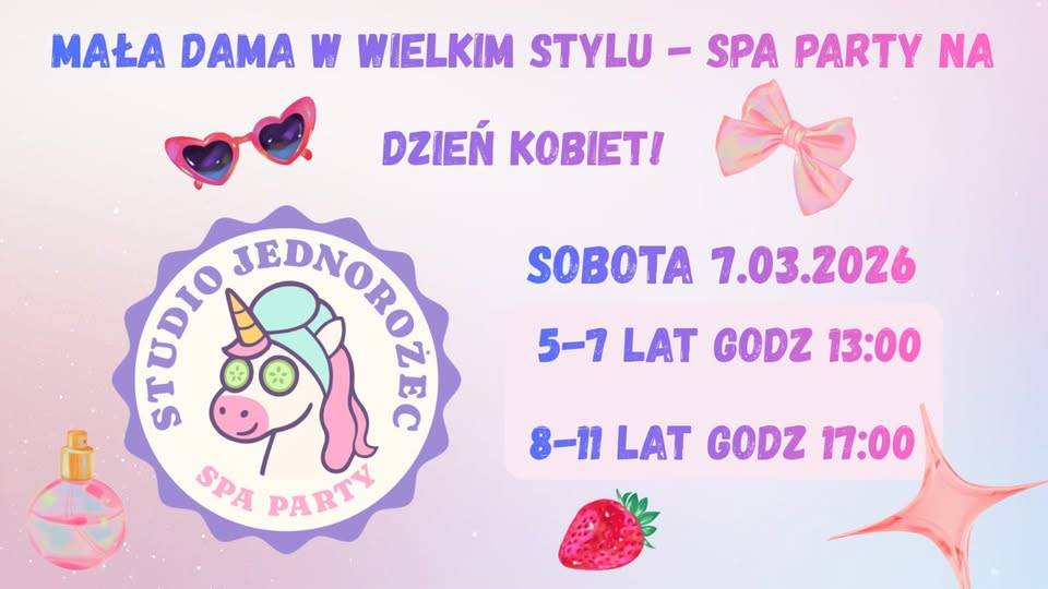 Studio Jednorożec SPA Party, zaprasza wszystkie dziewczynki na wspólne świętowanie dnia kobiet, wydarzenie odbędzie się 7 marca 2026 r.