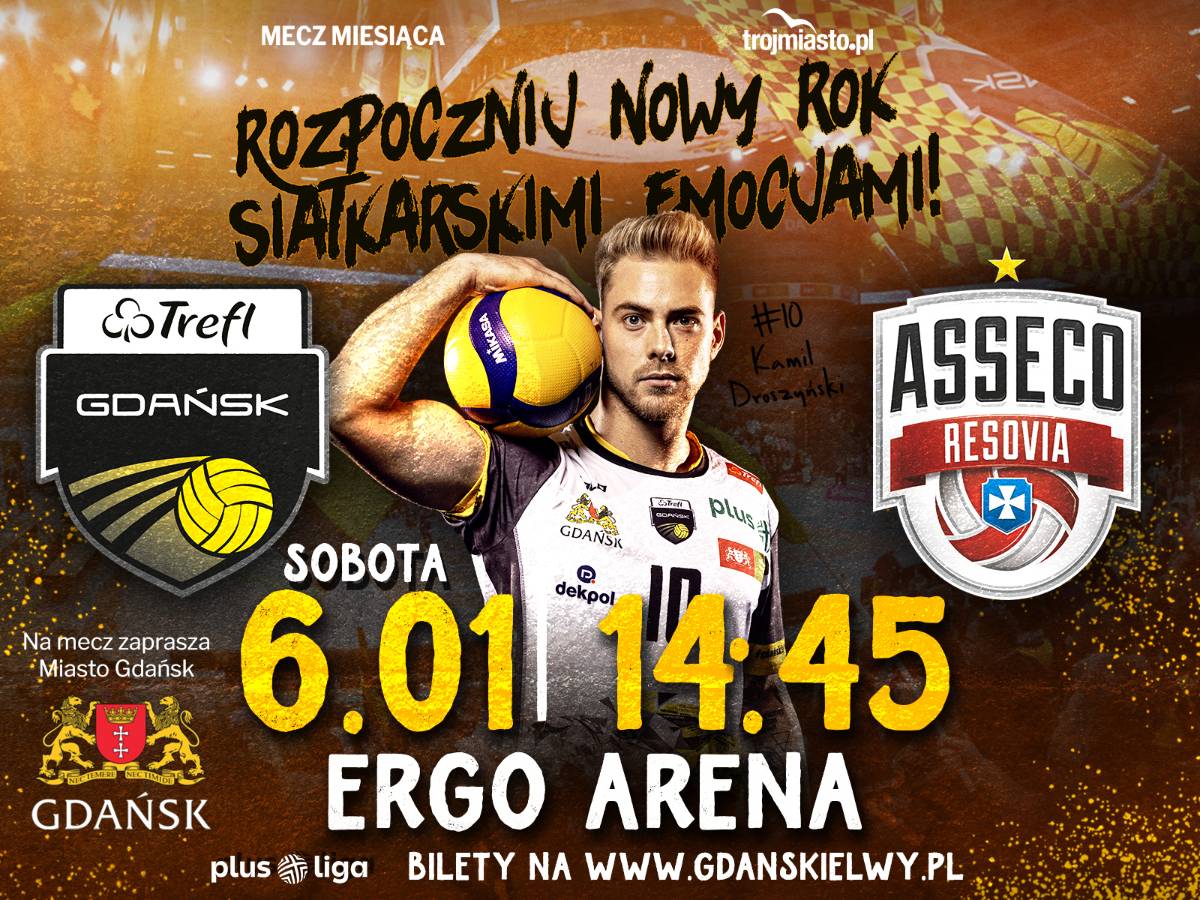 Nowy rok siatkarze Trefla Gdańsk rozpoczną od topowego spotkania! W sobotę 6 stycznia Trefl Gdańsk podejmie w ERGO ARENIE jedną z silniejszych drużyn PlusLigi – Asseco Resovię Rzeszów! W zespole prowadzonym przez Giampaolo Medei’ego zobaczymy gwiazdy polskiej i światowej siatkówki: Kubę Kochanowskiego, Karola Kłosa, Pawła Zatorskiego, Fabiana Drzyzgę, Torey’a DeFalco czy Stephena Boyer’a. W święto Trzech Króli zapowiada się topowy mecz z dużą dawką emocji! Zapraszamy na pierwsze starcie „gdańskich lwów” w 2024 roku!