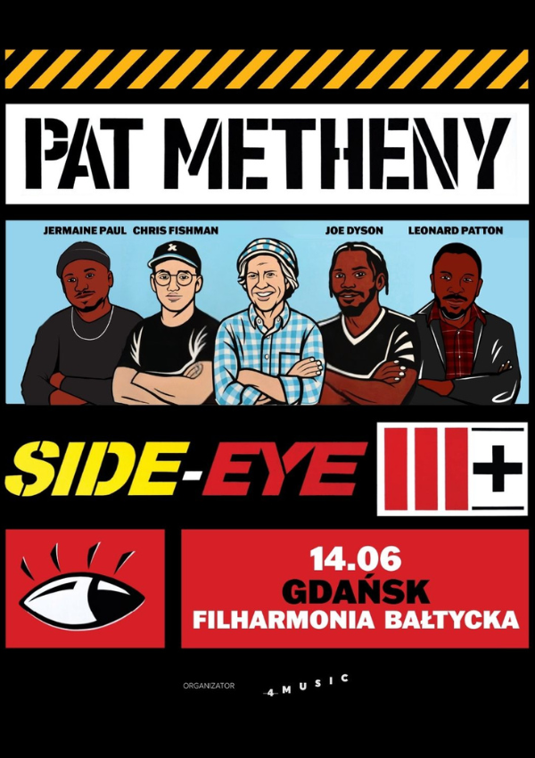 Trasa Side-Eye III+ to kontynuacja autorskiego projektu Metheny’ego, w którym gitarzysta zaprasza do zespołu młodych, wybitnie utalentowanych muzyków, aby konfrontować swój dorobek z ich świeżą energią i nowymi perspektywami. Ten dynamiczny, żywy format koncertowy to połączenie klasycznego stylu Metheny’ego z energią nowej generacji muzyków i świeżym spojrzeniem na jego muzyczny świat.