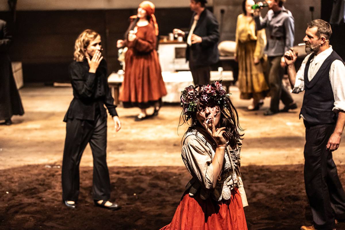 Na scenie w trakcie spektaklu palone są papierosy i kadzidło.