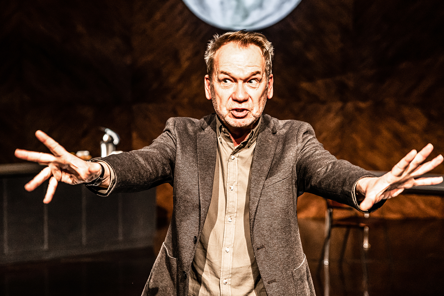 W spektaklu pojawiają się bardzo głośne efekty dźwiękowe.