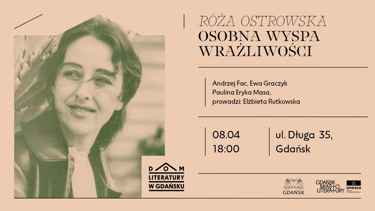 Zapraszamy na rozmowę poświęconą Róży Ostrowskiej – gdańskiej pisarce, aktorce i scenarzystce teatralnej, której biografia i twórczość splatają się z historią XX wieku. Wspólnie przyjrzymy się jej doświadczeniom oraz działalności literackiej, radiowej i teatralnej.