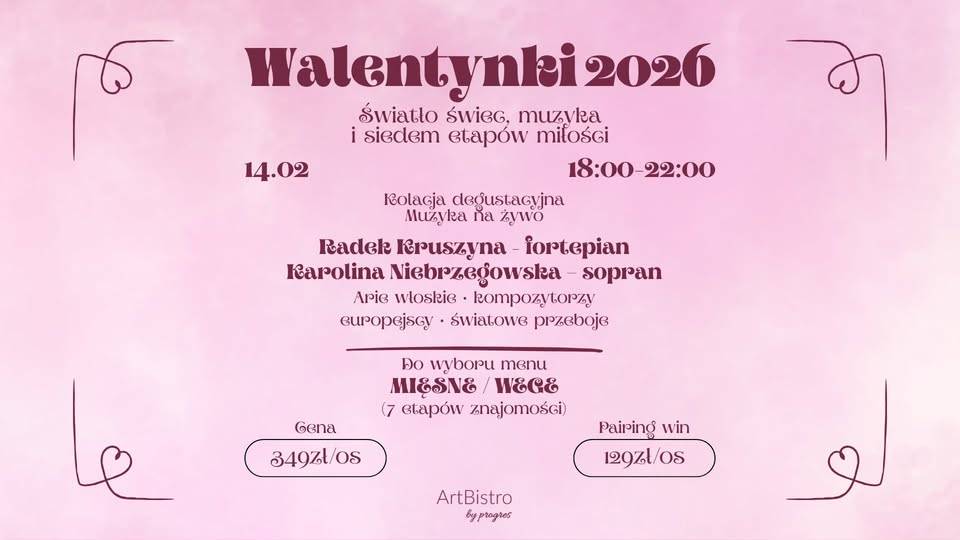14 lutego ArtBistro zamieni się w przestrzeń pełną światła świec i dźwięków muzyki na żywo. Tego wieczoru zaprosimy Was na kolację degustacyjną inspirowaną siedmioma etapami miłości - subtelną, przemyślaną i celebrującą wspólny czas.Wieczór dopełni