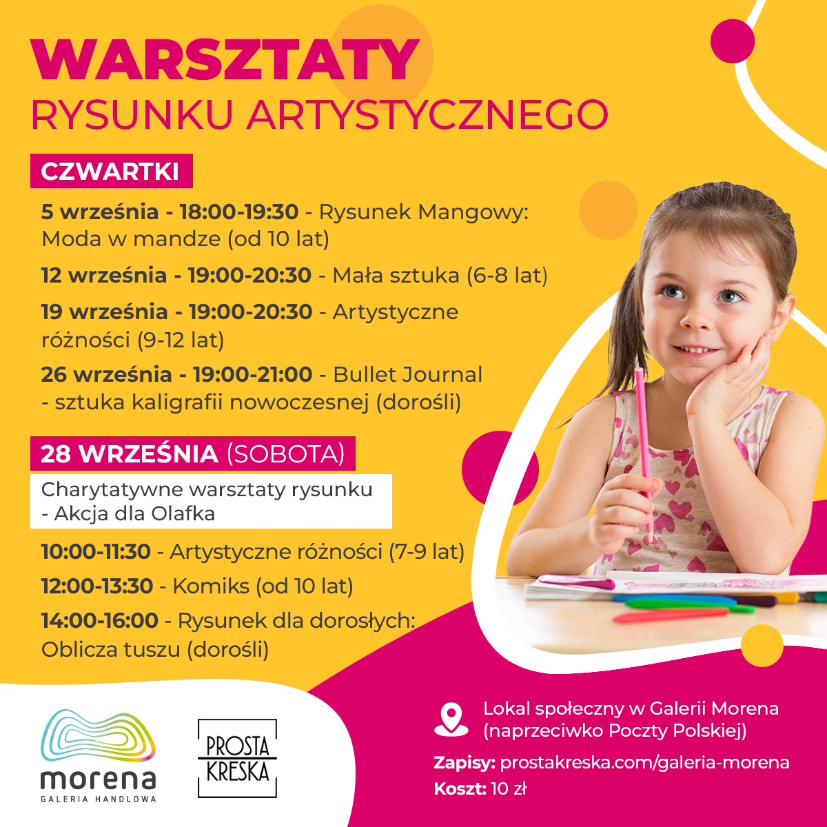 Nowy rok szkolny - nowe postanowienia - a może by tak... zacząć rysować? Sprawdź jak to jest na pokazowych zajęciach rysunku z pracownią Prosta Kreska w Galerii Morena. Może w ten sposób odnajdziecie pomysł na spędzanie wolnego czasu i rozwijanie swoich pasji?