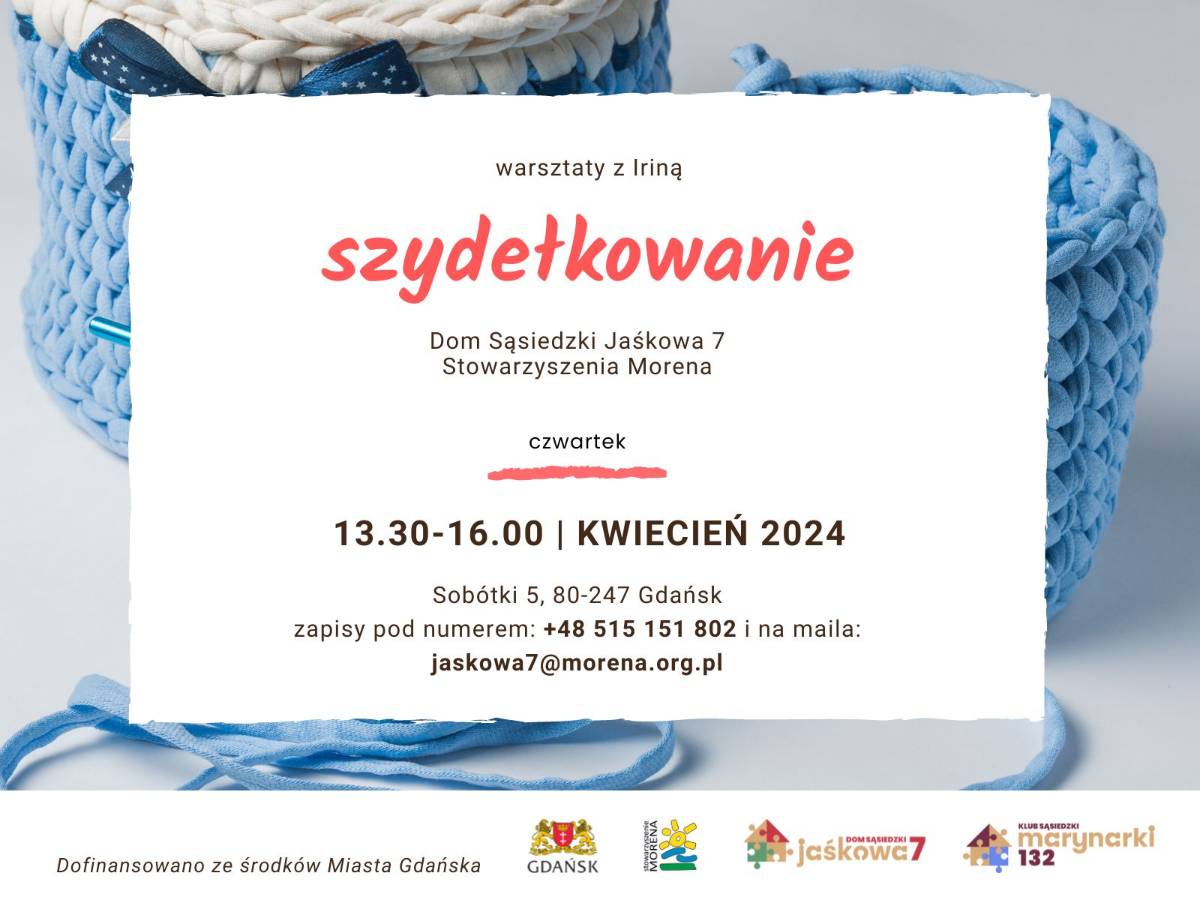 Międzypokoleniowe warsztaty z szydełkowania wprowadzają w podstawowe techniki rękodzieła. Zajęcia odbywają się cyklicznie co czwartek o godzinie. 16.00 w Domu Sąsiedzkim Jaśkowa 7 na ulicy Sobótki 5